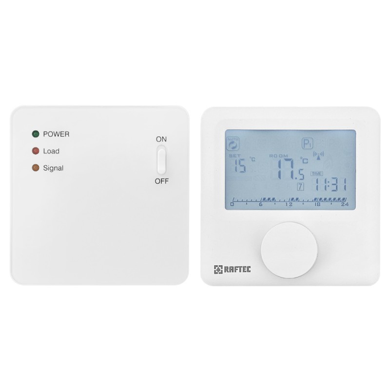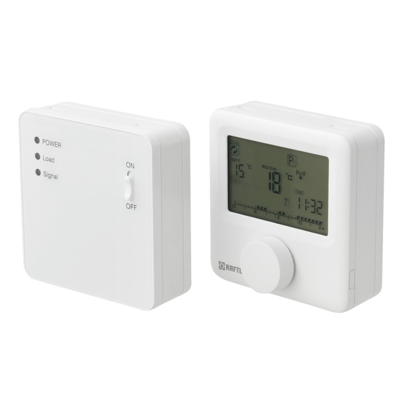 R06RF - це бездротовий терморегулятор, який передбачає наявність двох блоків у комплекті (приймач та бездротовий програматор). Блок приймача підключається до котла на безпотенційні клеми (наведено в інструкції до котла). При цьому програматор виноситься в потрібну кімнату, де потрібно підтримувати необхідний температурний режим. Ця частина комплекту може встановлюватися на стіну, або ставитися на стіл за допомогою спеціальних кількох ніжок. Живлення програматора співіснує від батареї або від зарядного кабелю.