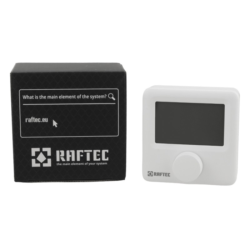 Термостат RAFTEC R06WL - це бездротовий програмований терморегулятор. Він застосовується для керування сервоприводами через безпровідний зональний комунікатор R521WL