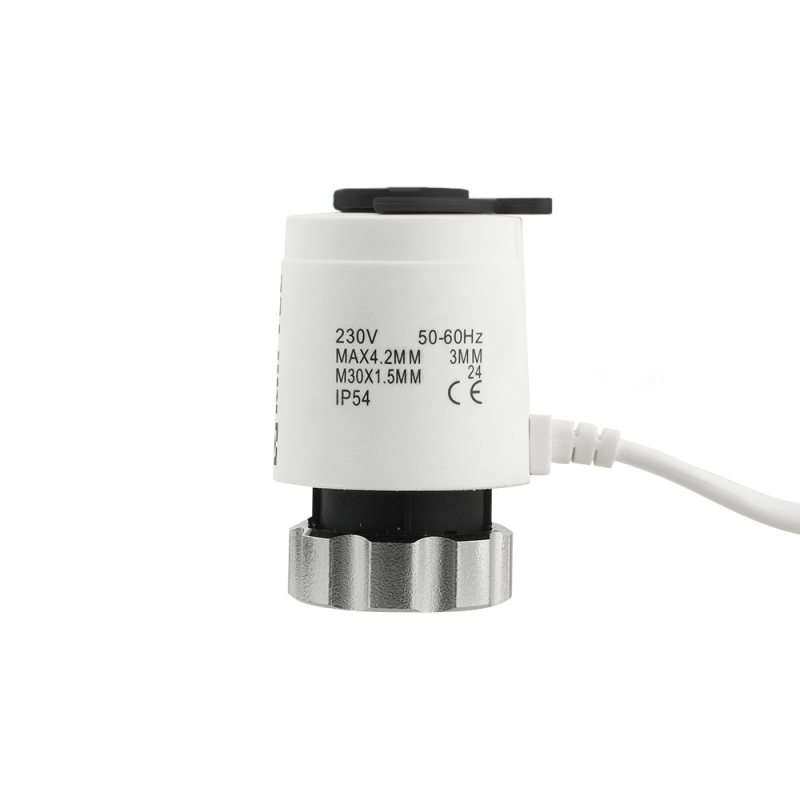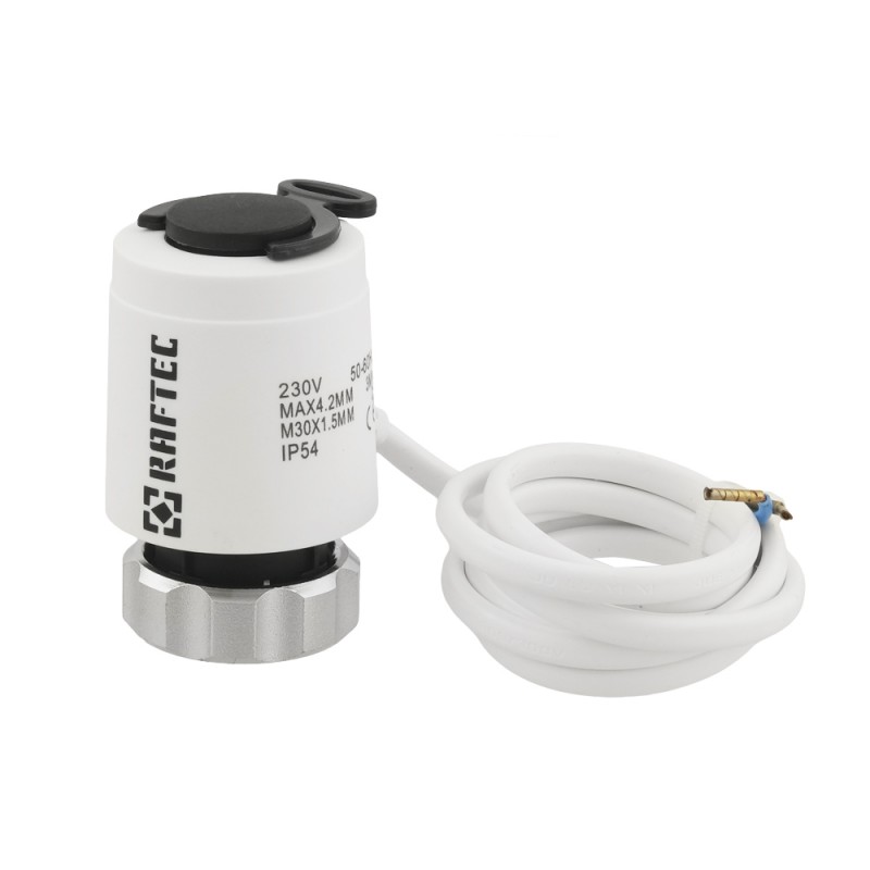 Електротермічний сервопривід нормально закритий Raftec - призначений для управління термостатичними клапанами кліматичних систем по команді кімнатного термостата, контролера або ручного перемикача. Сервоприводи можуть використовуютися спільно з радіаторними термостатичними клапанами, колекторними групами, а також з іншими термостатичними клапанами, мають приєднувальний розмір М30х1,5.