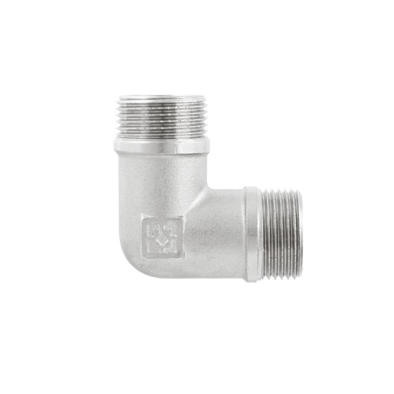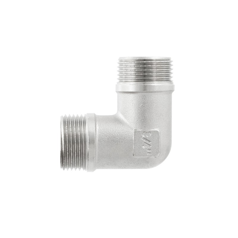 Різьбовий фітинг Raftec - кутовий латунний нікельований фітинг для з'єднання елементів трубопроводу. Різьба зовнішня циліндрична трубна ISO 228, EN 10226.