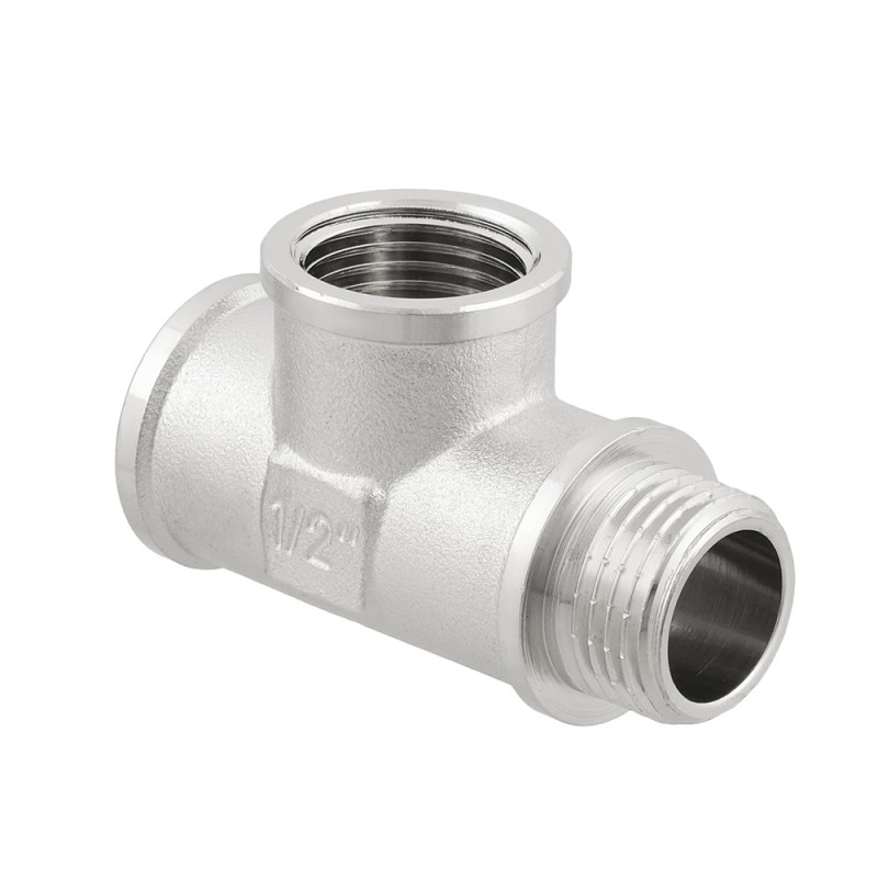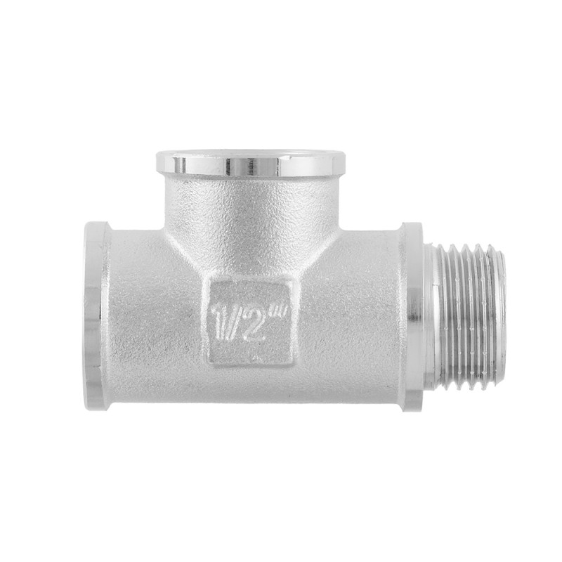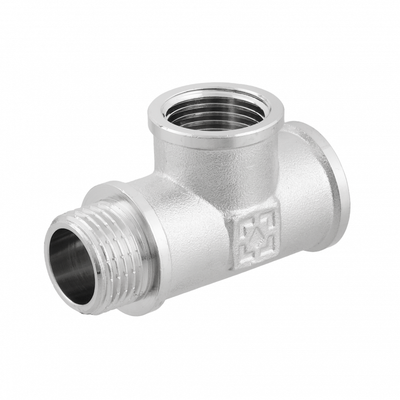 Різьбовий фітинг Raftec - латунний нікельований трьохсторонній фітинг, рівнопрохідний. Різьба внутрішня-внутрішня-зовнішня циліндрична трубна ISO 228, EN 10226.