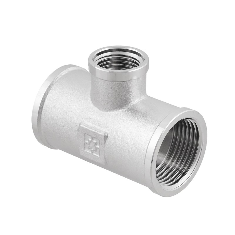 Різьбовий фітинг Raftec - латунний нікельований трьохсторонній фітинг з виходом меншого діаметру. Різьба внутрішня циліндрична трубна ISO 228, EN 10226.