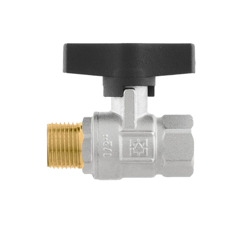 Повнопрохідний кульовий кран серії Gold зі збільшеним ресурсом. Корпус – латунний, нікельований. Оснащений ручкою типу «метелик» з потовщеною стінкою з алюмінієвого сплаву і матовим фарбуванням.