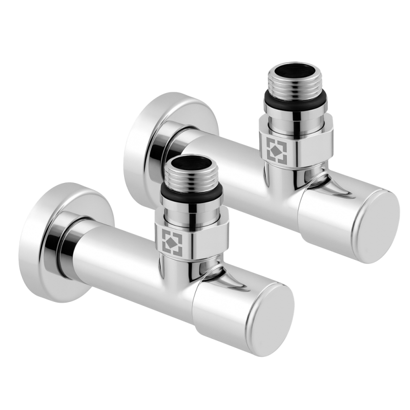 Комплект довгастих кутових радіаторних кранів з накидною гайкою і круглою ручкою RV-4012