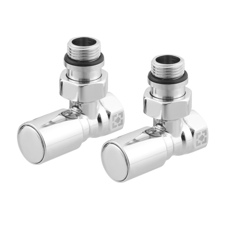 Комплект кутових радіаторних кранів з накидною гайкою і круглою ручкою RV-6012