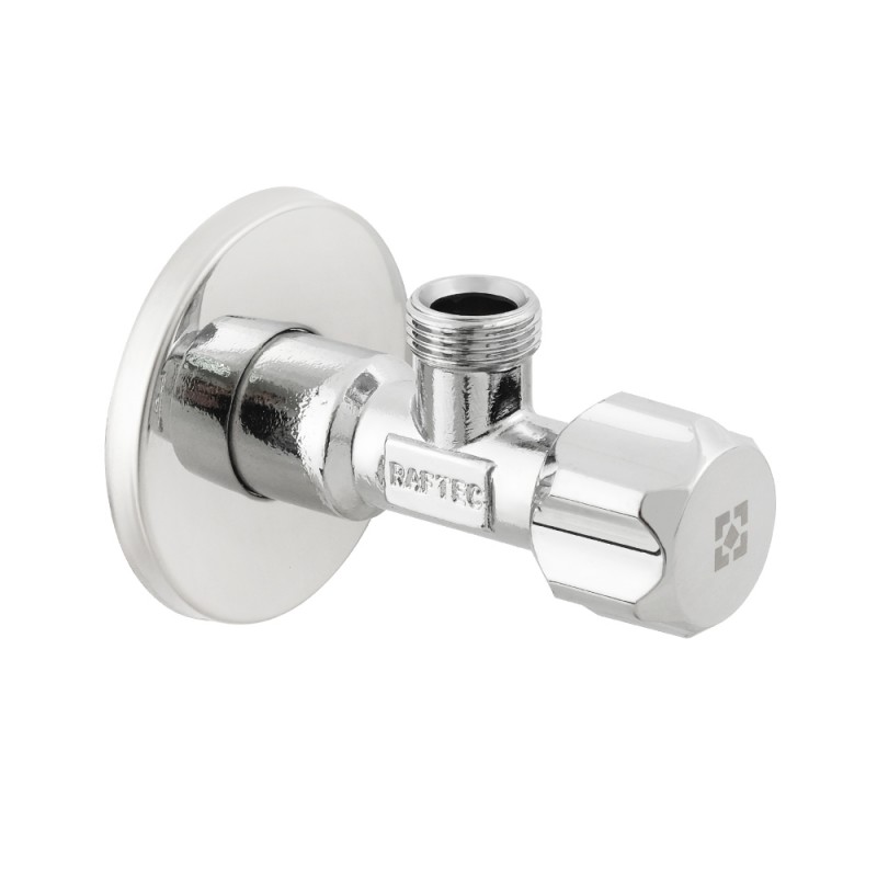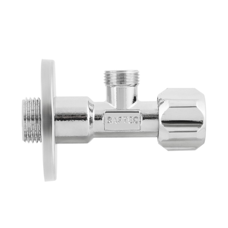 Кран вентильний Raftec серії Silver - призначений для підключення до мережі гарячого та холодного водопостачання, санітарно-технічних приладів за допомогою гнучких підводок з накидною гайкою. У комплекті передбачена декоративна чашка.